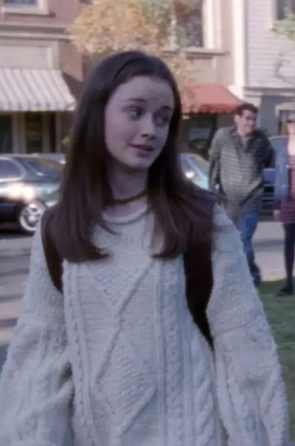 Rory’s debut in the pilot episode set the tone: smart, sweet, and effortlessly stylish. Her chunky white fisherman sweater is the ultimate fall staple—timeless, cozy, and versatile. Pair it with denim and boots for a look that says “I read for fun and drink coffee religiously.”